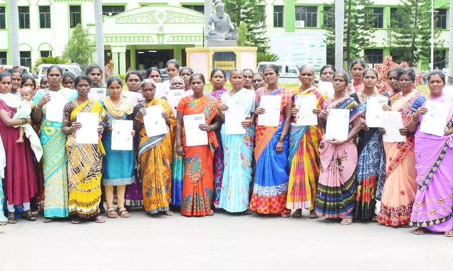 மனு அளிக்க வந்த பெண்களை படத்தில் காணலாம்.