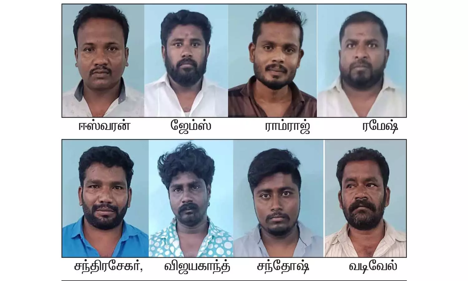 - போலீசார் அங்கு சென்று வடிவேல் உள்ளிட்டவர்களை சுற்றி வளைத்து பிடித்தனர். இதில் ஒருவர் தப்பியோடி விட்டார். 8 பேர் சிக்கினர்.