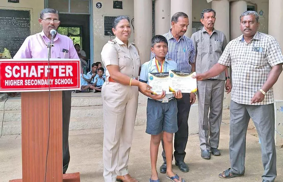 டவுன் சாப்டர் மேல்நிலை பள்ளியில் அனைத்து மகளிர் போலீஸ் இன்ஸ்பெக்டர் அந்தோணி ஜெகதா மற்றும் போலீசார் மாணவர்களிடம் குழந்தைகளுக்கு எதிரான குற்றங்கள் நடப்பதை தடுப்பது பற்றியும், குற்றங்கள் நடந்தால் செயல்பட வேண்டிய நடவடிக்கைகள் பற்றியும் (உதவி எண்:1098,181) மற்றும் பாலியல் ரீதியான குற்றங்கள் சம்பந்தமாகவும், போக்சோ சட்டம் குறித்தும், அறிவுரைகள் வழங்கி விழிப்புணர்வு ஏற்படுத்தினார். தொடர்ந்து பல்வேறு போட்டிகளில் வெற்றி பெற்ற மாணவர்களுக்கு சான்றிதழ் மற்றும் பதக்கங்களை வழங்கினார். இந்த நிகழ்ச்சியில் பள்ளி தலைமை ஆசிரியர் அருள்தாஸ் ஜெபக்குமார் மற்றும் பலர் கலந்து கொண்டனர்.