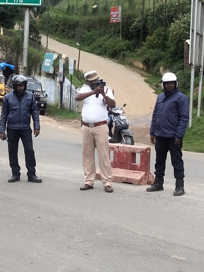 ஊட்டி நகர போலீஸ் துணை சூப்பிரண்டு மகேஸ்வரன், போக்குவரத்து சப்-இன்ஸ்பெக்டர் வின்சென்ட் மற்றும் போலீசார் நவீன கருவி மூலம் வாகனங்கள் அதிவேகமாக இயக்கப்படுகிறதா என சோதனை மேற்கொண்டனர்.