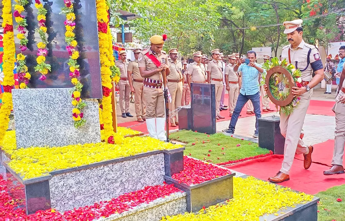 - காவலர் வீரவணக்க நாளில் அவர்களின் தியாகத்தை போற்றும் வகையில் அரசு மரியாதையுடன் துப்பாக்கி குண்டுகள் முழங்க எஸ்.பி. பாலாஜி சரவணன் தலைமையில் அஞ்சலி செலுத்தப்பட்டது.