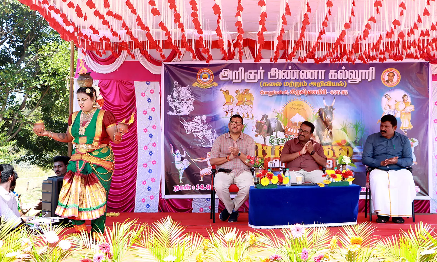 கிருஷ்ணகிரி அருகே போலுப்பள்ளியில் உள்ள அறிஞர் அண்ணா கலை மற்றும் அறிவியல் கல்லூரியில் பொங்கல் விழா கொண்டாடப்பட்டது.
