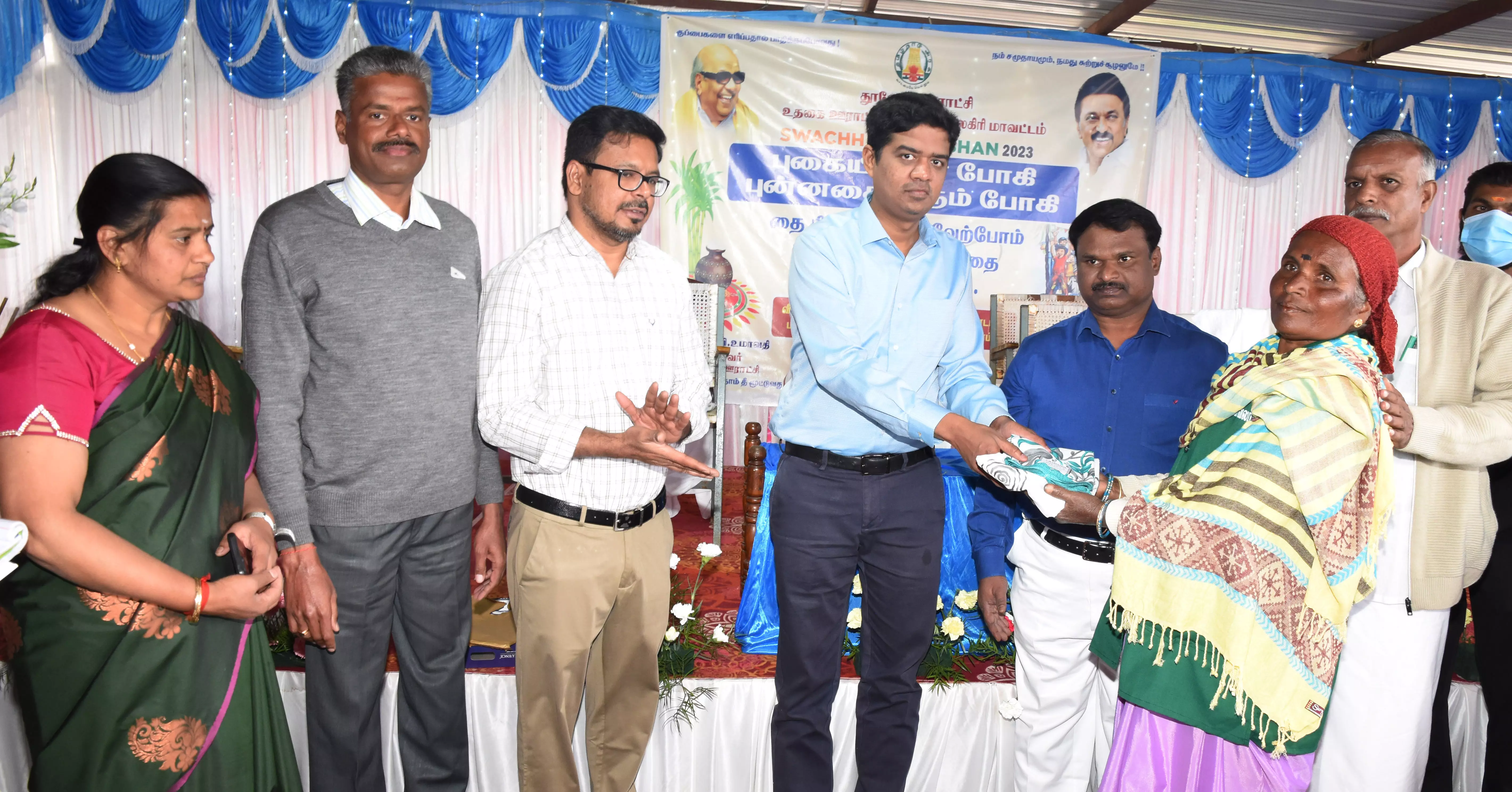 மேலும் ஊரக வளர்ச்சி மற்றும் உள்ளாட்சித்துறை, தமிழ்நாடு மாநில ஊரக நகர்புற வாழ்வாதார இயக்கம் சார்பில், ஒரு சுய உதவிக்குழுவுக்கு தொழில் தொடங்குவதற்காக ரூ.15 லட்சத்திற்கான காசோலை, சிறப்பாக பணிபுரிந்த தூய்மை பணியாளர்களுக்கு புத்தாடைகளை கலெக்டர் வழங்கினார்.சிறப்பாக போடப்பட்டிருந்த ரங்கோலி கோலத்தினை பார்வையிட்டு சுய உதவிக்குழு உறுப்பி னர்களை பாராட்டினார்.