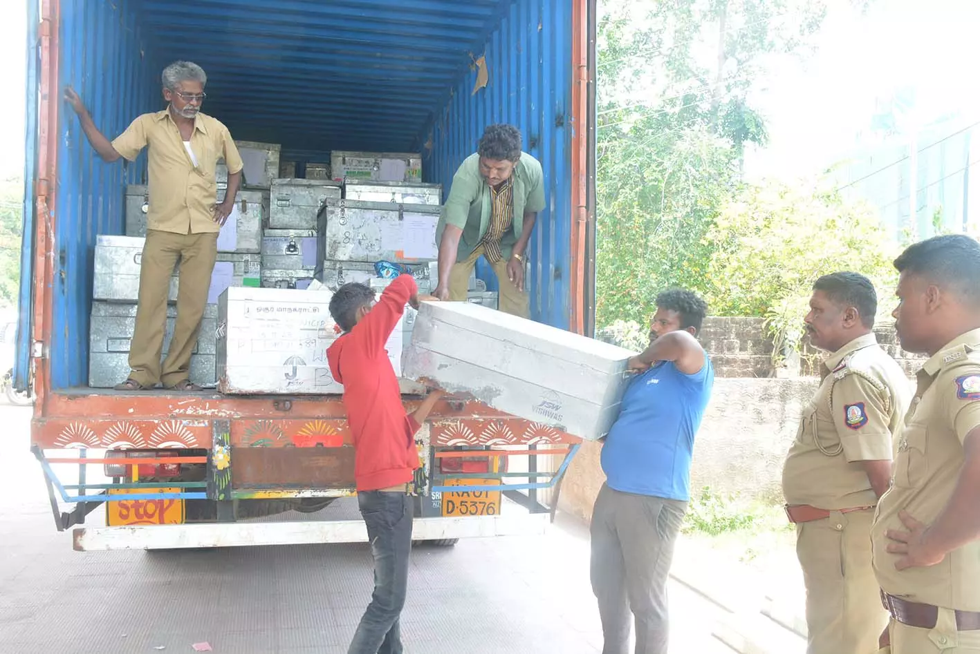 - 15 ஆண்டுகளுக்கு மேற்பட்ட வாக்குப்பதிவு எந்திரங்களை மட்டும் தனியாக பிரித்து வைக்கும் பணி மேற்கொள்ளப்பட்டது.