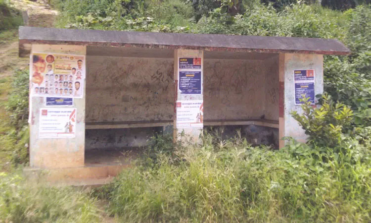 - நிழற்குடை பராமரிப்பின்றி புதர்கள் சூழ்ந்து காணப்படுகிறது.