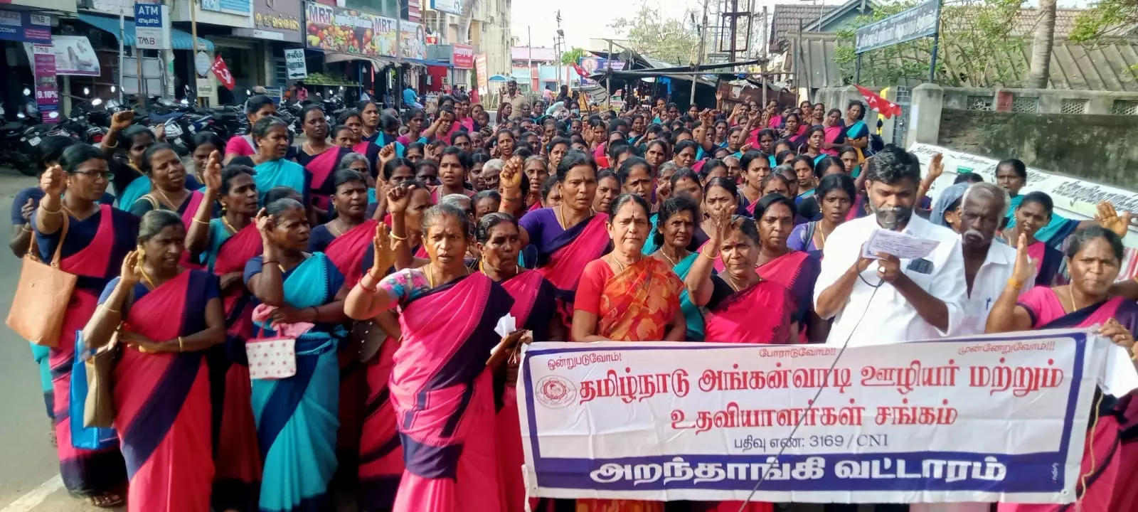 அங்கன்வாடி ஊழியர்கள் ஆர்ப்பாட்டம்