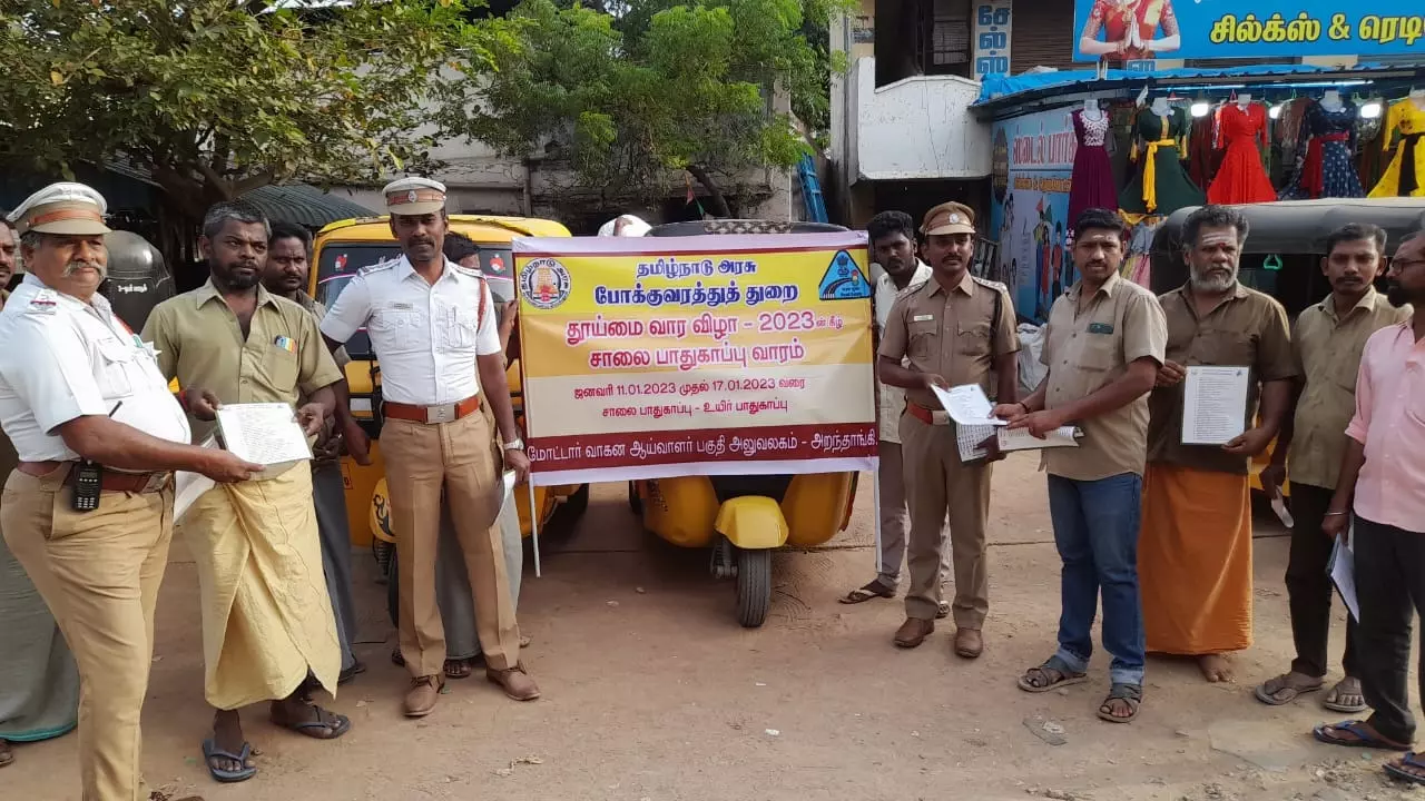 - தமிழக முழுவதும் கடந்த 11 ஆம் தேதி முதல் 17ஆம் தேதி வரை சாலை பாதுகாப்பு குறித்து விழிப்புணர்வு நிகழ்ச்சி தமிழ்நாடு போக்குவரத்துத்துறை சார்பாக நடத்தப்பட்டு வருகிறது.
