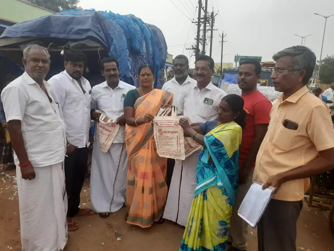 - பொதுமக்களுக்கு விழிப்புணர்வு துணி பை வழங்கப்பட்டது