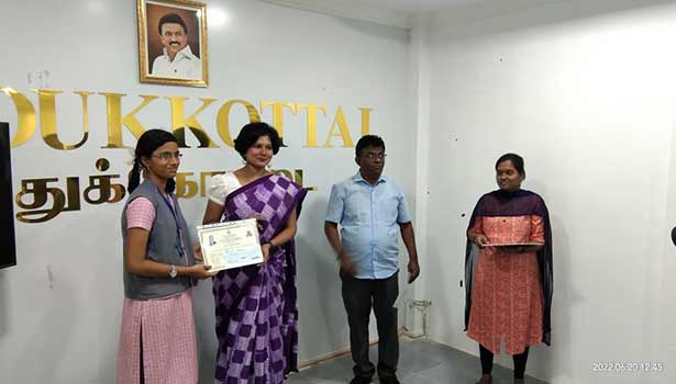 - மணமேல்குடி அரசு பள்ளி மாணவிக்கு கலெக்டர் பரிசு வழங்கி பாராட்டினார்.