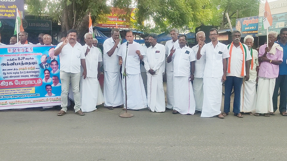 போராட்டத்தில் மத்திய அரசின் அக்னிபாத் திட்டத்தை திரும்ப பெற வலியுறுத்தி முழக்கமிடப்பட்டது. வட்டார காங்கிரஸ் தலைவர் வி.கிரிதரன், நகரத்தலைவர் எஸ்.பழனியப்பன், மாவட்ட துணைத்தலைவர் எஸ்பி.ராஜேந்திரன் நிர்வாகிகள் ச.சோலையப்பன், எஸ்பி.மணி, ஆர்.பாலுச்சாமி, நாட்டுக்கல் ராஜேந்திரன், வேலாயுதம், சரவணபவன் மணி, தங்கமணி, மணிமாறன் உள்ளிட்டோர் பங்கேற்றனர்.