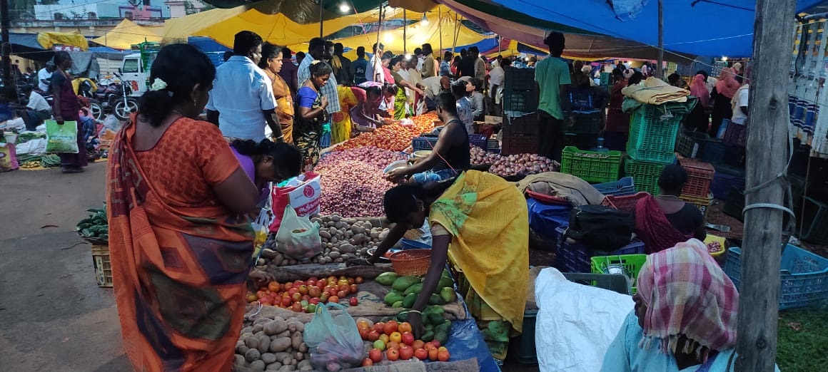 - வாரச்சந்தையில் பொருட்கள் வாங்க மக்கள் கூட்டம் அலைமோதியது