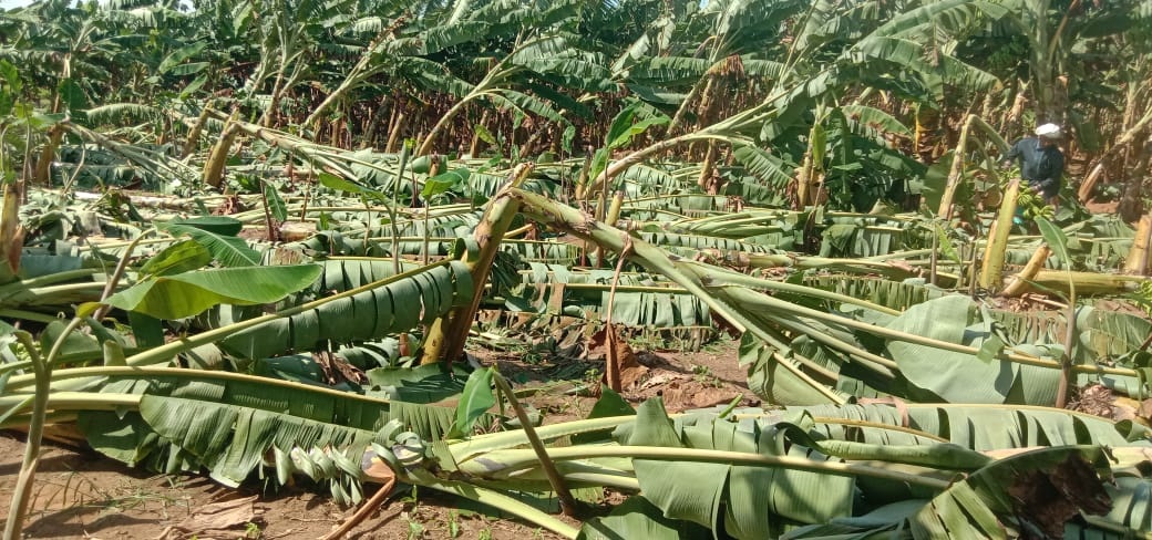 - 500க்கும் மேற்பட்ட வாழை மரங்கள் சாய்ந்து சேதம்