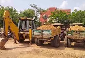 மணல் கடத்திய டிராக்டர்கள்-பொக்லைன் எந்திரம் பறிமுதல்