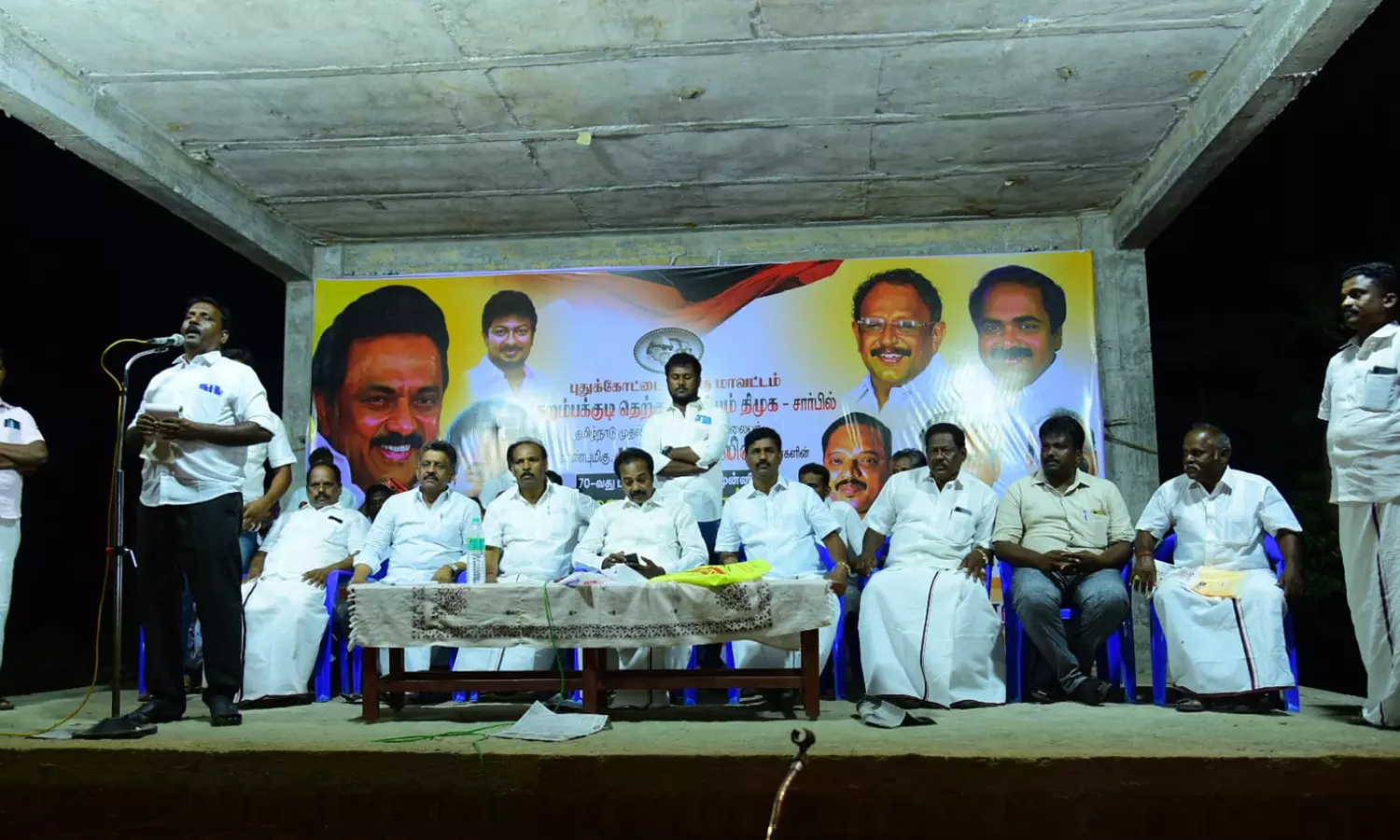 புதுக்கோட்டை தி.மு.க. வடக்கு மாவட்டம் கறம்பக்குடி தெற்கு ஒன்றியத்தின் சார்பில் தமிழக முதல்வரும் தி.மு.க. தலைவருமான மு.க.ஸ்டாலின் 70-வது பிறந்த நாளை முன்னிட்டு தெருமுனைப் பிரச்சாரக் கூட்டம் புதுப்பட்டி, பல்லவராயன்பத்தை, மலையூர், கணக்கன் காடு ஆகிய பகுதிகளில் கறம்பக்குடி தெற்கு ஒன்றிய செயலாளரும் மாவட்ட அறங்காவலர் குழு தலைவருமான தவ பாஞ்சாலன் தலைமையில் நடைபெற்றது. இதில் மாவட்ட கழக செயலாளரும் திருச்சி விமான நிலைய ஆலோசனை குழு உறுப்பினருமான வழக்கறிஞர் கே.கே. செல்லபாண்டியன் கலந்து கொண்டு சிறப்புரையாற்றினார்.