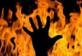 - அடுப்பில் இருந்து தீ அவர் மீது பரவியது