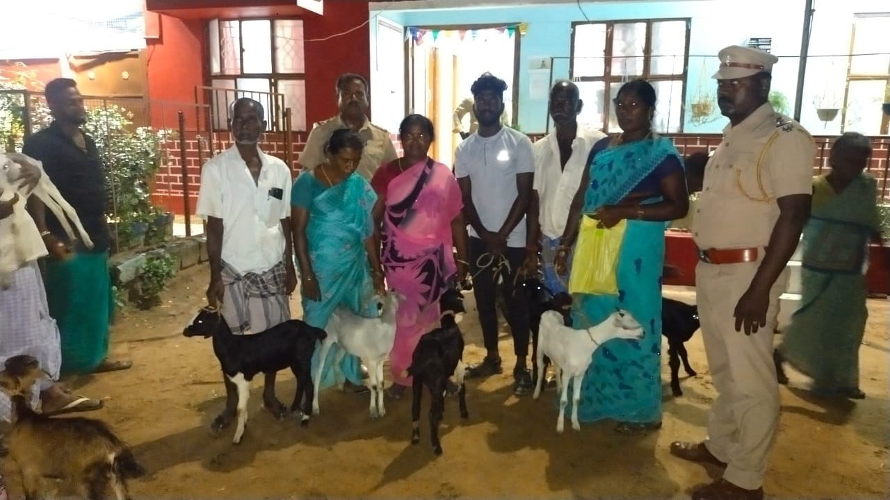 இதற்கிடையே ஆடுகள் பறிமுதல் செய்யப்பட்ட தகவல் அறிந்த ஆடு களை பறிகொடுத்தோர் கறம்பக்குடி போலீஸ் நிலையம் முன்பு திர ண்டனர். இதனால் பரபரப்பு ஏற்பட்டது. பின்னர்போலீசார் புகார் மற்றும் விசாரணையின் அடிப்படையில் ஆடுகளை உரிமையாளர்களிடம் ஒப்படைத்தனர்.