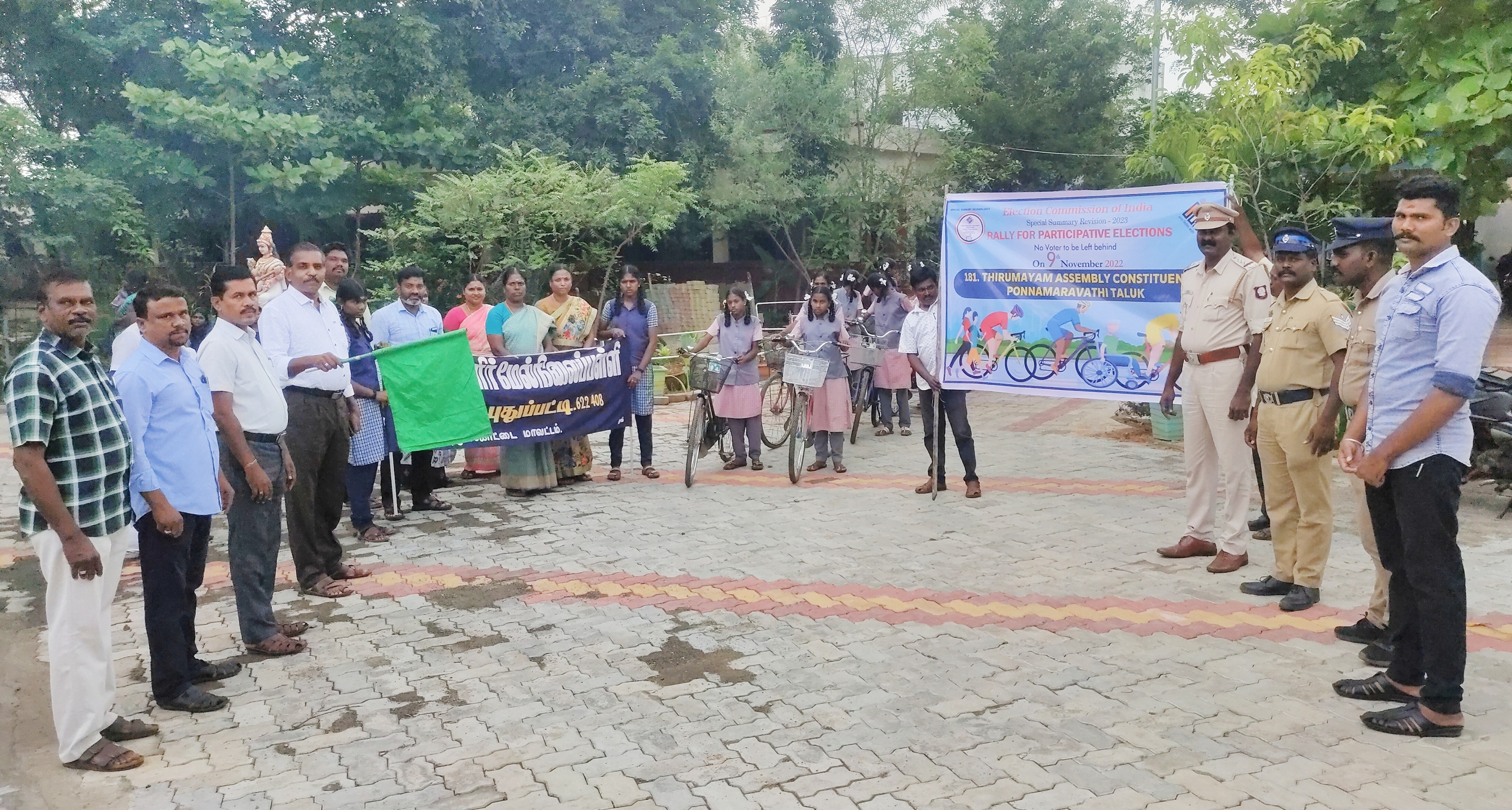 வாக்காளர் வரைவு பட்டியல் தேர்தல் ஆணையம் வெளியிட்டதை தொடர்ந்து தேர்தல் ஆணையத்தின் உத்தரவின்படி பொதுமக்களுக்கு விழிப்புணர்வை ஏற்படுத்தும் வகையில் வருவாய் துறையின் சார்பாக புதுக்கோட்டை மாவட்டம் பொன்னமராவதியில் உள்ள பொன் புதுப்பட்டி அரசு மகளிர் மேல்நிலைப் பள்ளியில் இலுப்பூர் வருவாய் கோட்டாட்சியர் குழந்தைசாமி மற்றும் பள்ளி தலைமையாசிரியர் நிர்மலா சைக்கிள் பேரணியை துவக்கி வைத்தார்.