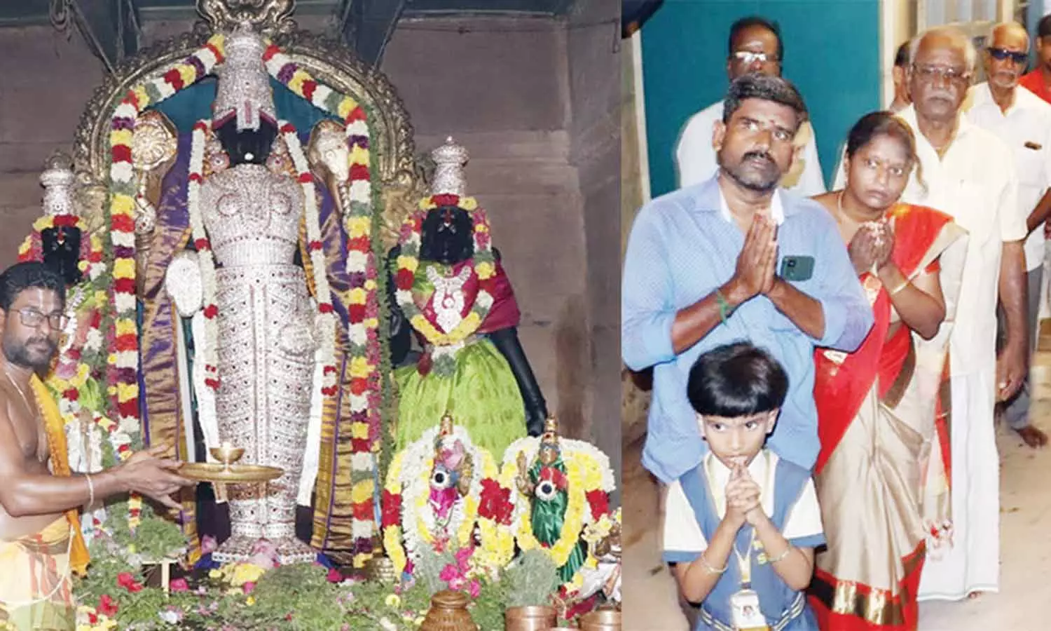 - பக்தர்கள் தேங்காய் உடைத்து துளசி மாலை உள்ளிட்ட பொருட்களை வழங்கி வழிபட்டனர்.