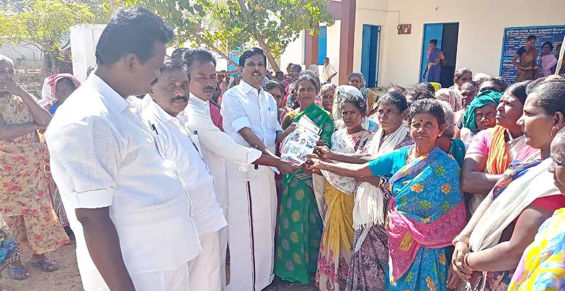 தி.மு.க. அரசின் சாதனை விளக்க துண்டு பிரசுரம் விநியோகம்