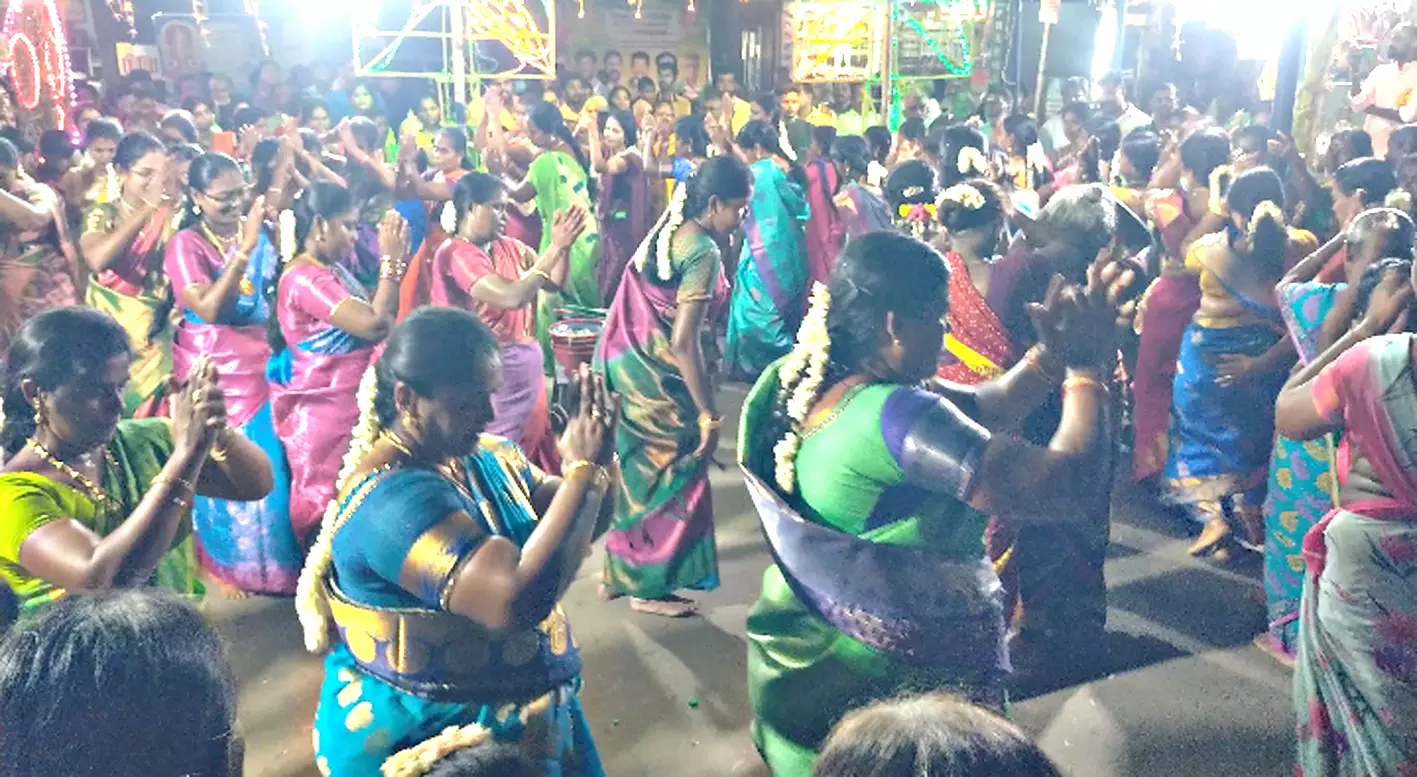 - பெண்கள் கோவில் முன்பாக கூடி அம்மன் புகழ் பாடி கும்மி கொட்டினர்.