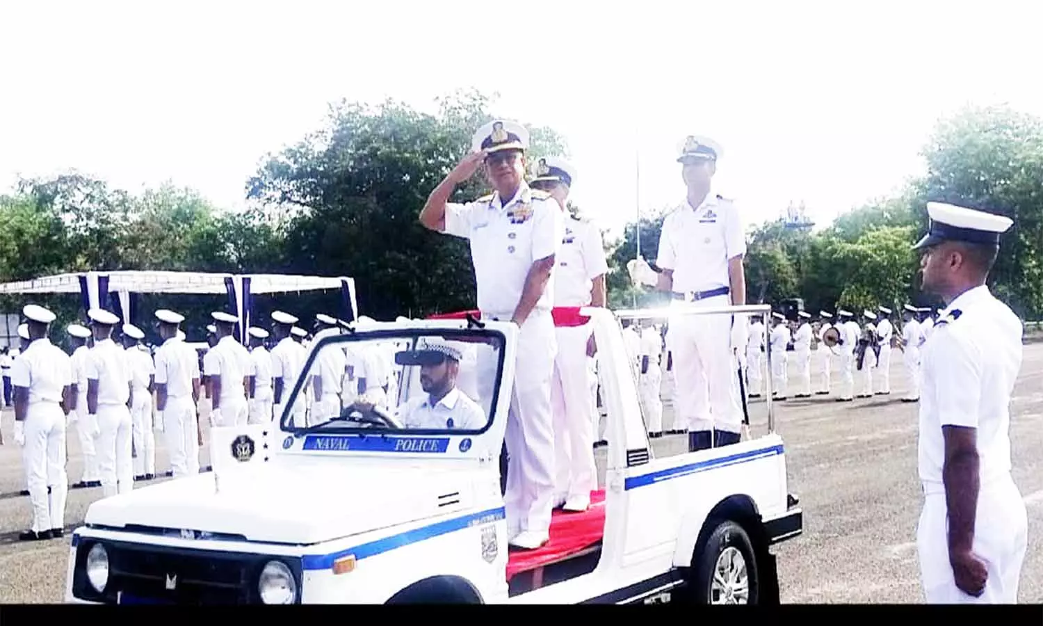சிறப்பு விருந்தினர் கிழக்கு பிராந்திய கடற்படை தளபதி வைஸ் அட்மிரல் பிஸ்வஜித்தாஸ்குப்தா அணிவகுப்பு மரியாதை ஏற்றுக்கொண்டார்.