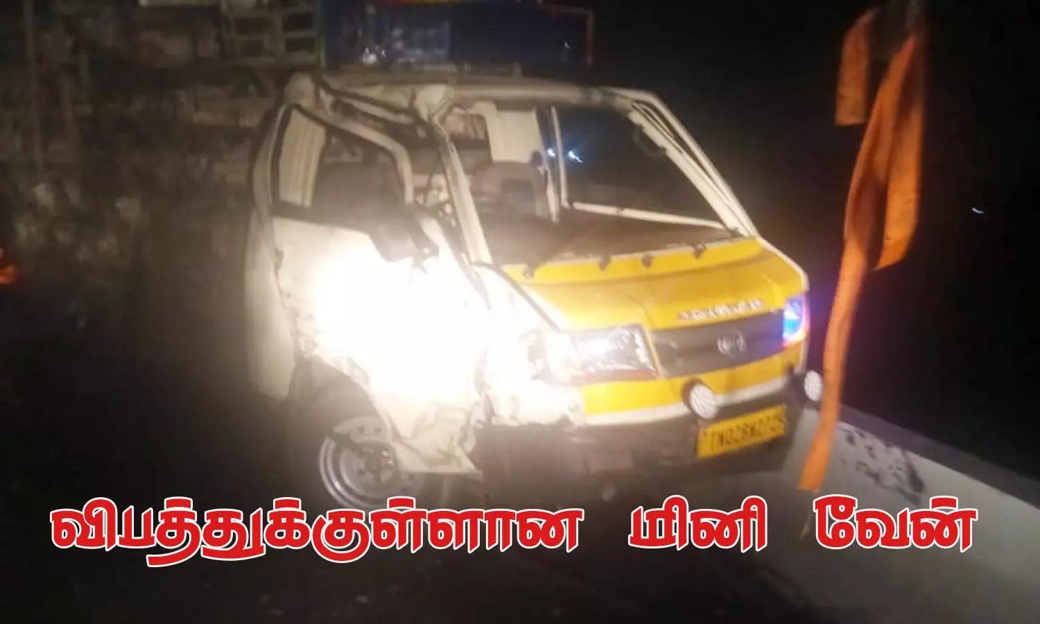 விபத்துக்குள்ளான மினி வேனை படத்தில் காணலாம்.