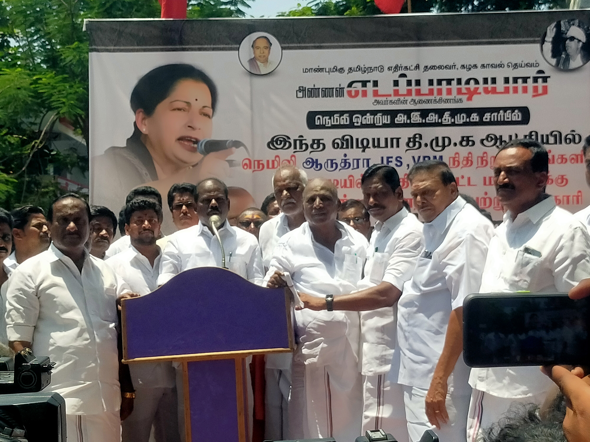 ராணிப்பேட்டை மாவட்டம் நெமிலி பஸ் நிலையத்தில் ராணிப்பேட்டை மாவட்ட அ.தி.மு.க. சார்பில் சு.ரவி எம்.எல்.ஏ. தலைமையில் கண்டன ஆர்ப்பாட்டம் நடைபெற்றது.