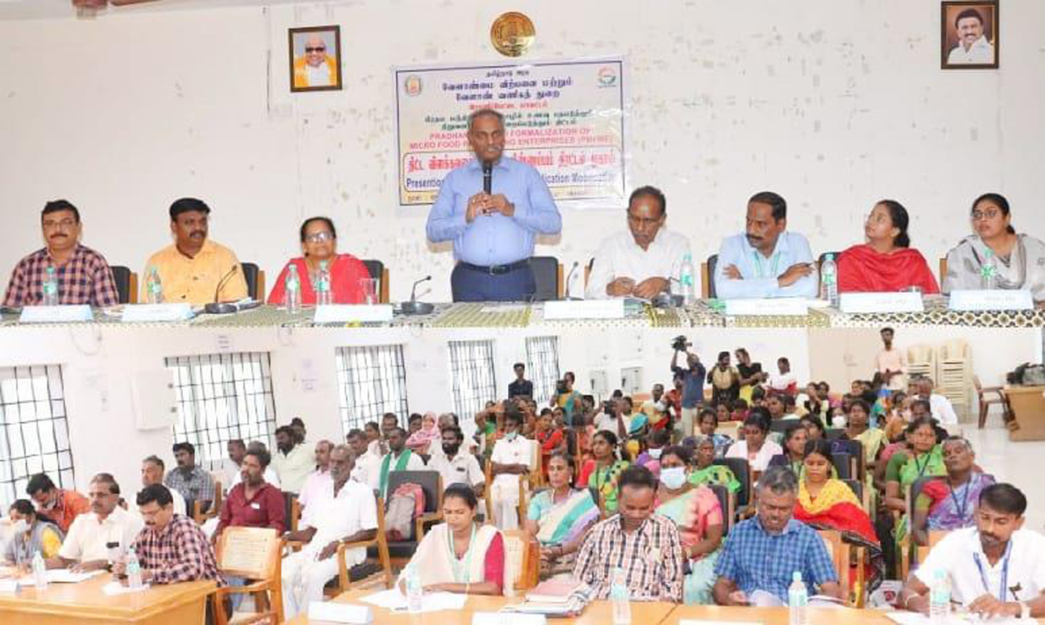 ராணிப்பேட்டையில் உணவு பதப்படுத்தும் குறுந்தொழில் நிறுவனங்களை முறைப்படுத்தும் விண்ணப்பம் திரட்டல் முகாம் கலெக்டர் பாஸ்கர பாண்டியன் தலைமையில் நடந்த போது எடுத்த படம்.