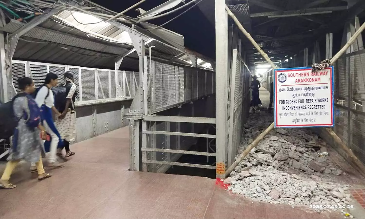 இதில் ஒரு வழி பாதை பழுந்தடைந்துள்ளதால் அந்த பாதையை தற்போது மூடி உள்ளனர். ஒரு வழி பாதையே பயணிகள் பயன்படுத்தி வருவதால் கடும் அவதிக்குள்ளாகி உள்ளனர்.