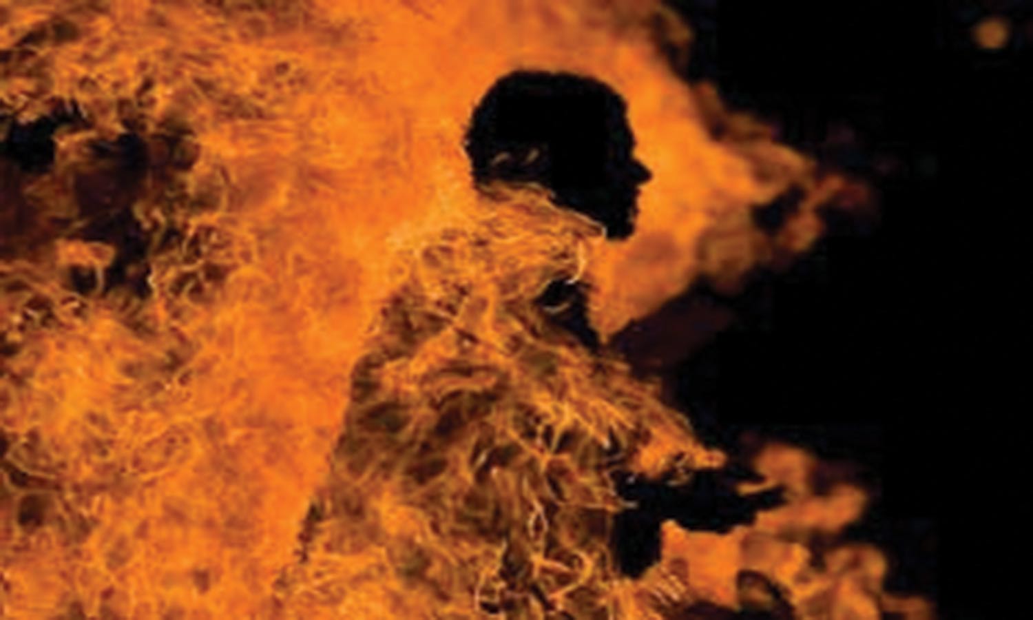 - மண்எண்ணெய் ஊற்றிக்கொண்டு தீ வைத்துக் கொண்டார்.