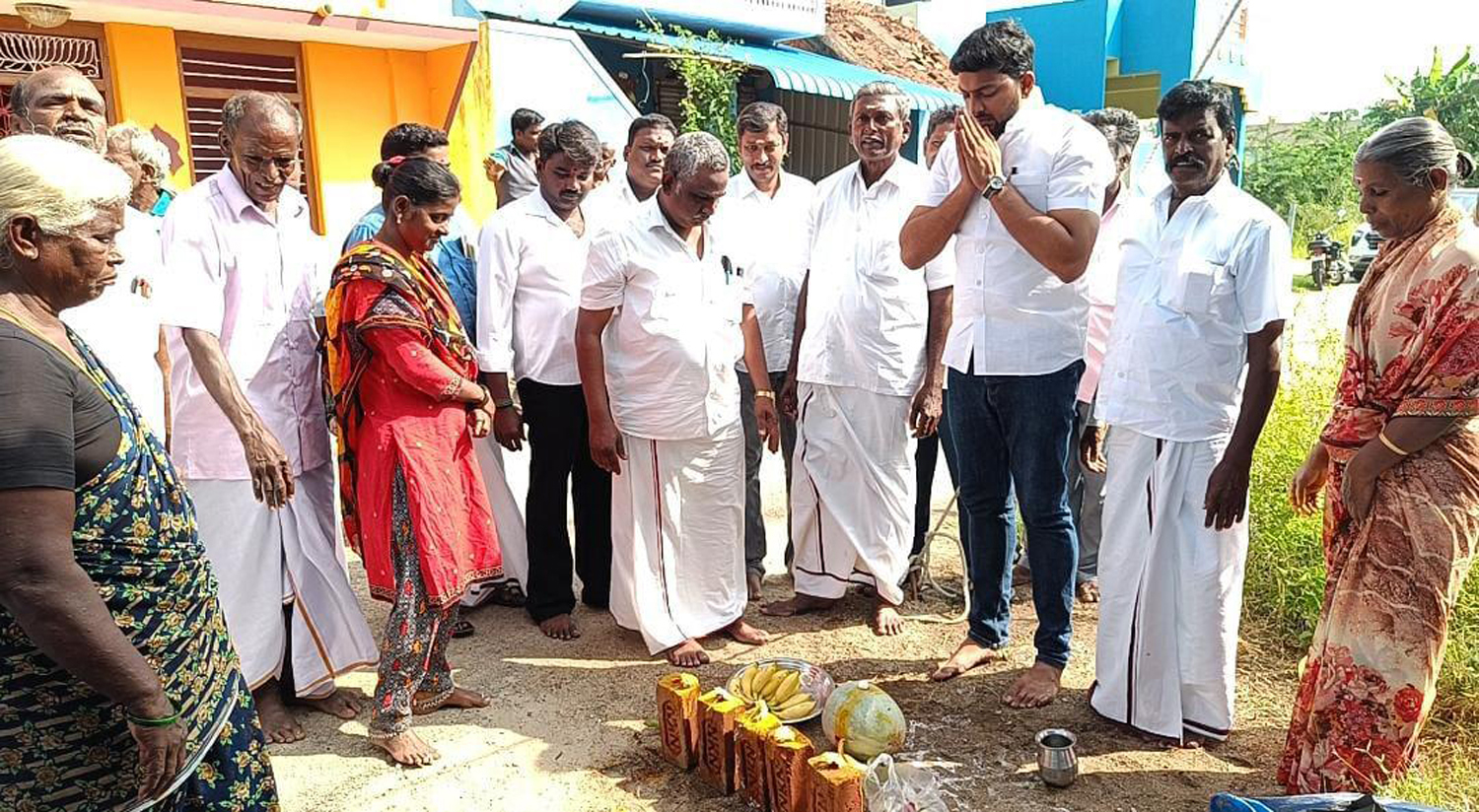 கிருஷ்ணாபுரத்தில் கழிவுநீர் கால்வாய் அமைக்கும் பணிக்கு பூமி பூஜை போட்ட போது எடுத்த படம்.