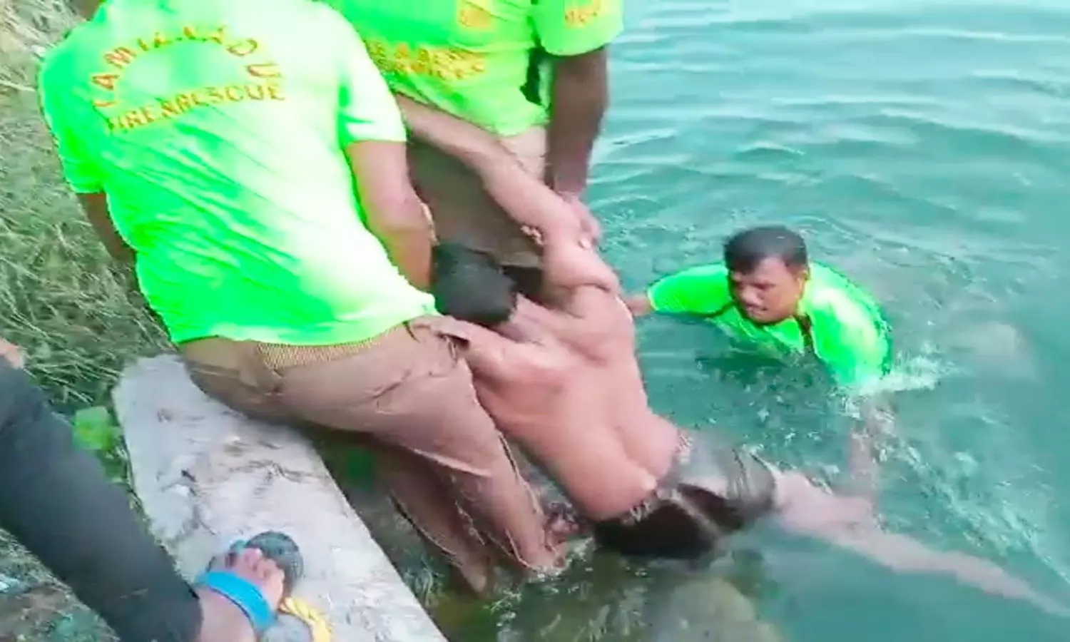 அப்போது திடீரென தாமோதரன் நீரில் மூழ்கினார். நீண்ட நேரம் ஆகியும் வெளியே வராததால் அதிர்ச்சியடைந்த அவரது நண்பர்கள் கத்தி கூச்சலிட்டனர். சத்தம் கேட்டு வந்த அந்த பகுதி மக்கள் கிணற்றில் குதித்து தாமோதரனை தேடினர்.