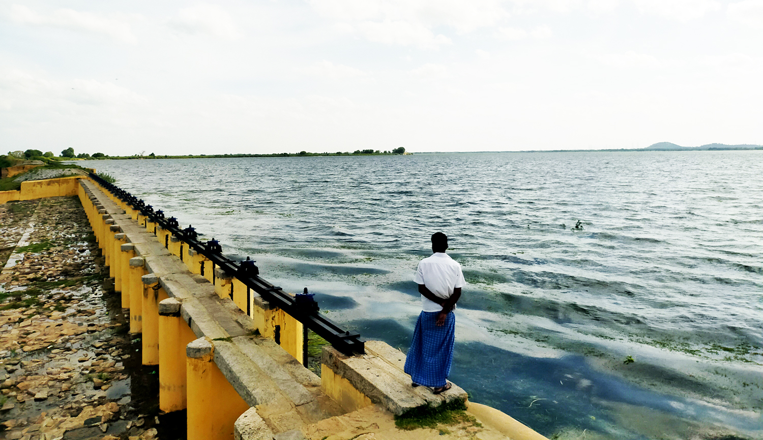 பிரம்மாண்டமாக காட்சி அளிக்கும் காவேரிப்பாக்கம் ஏரி.