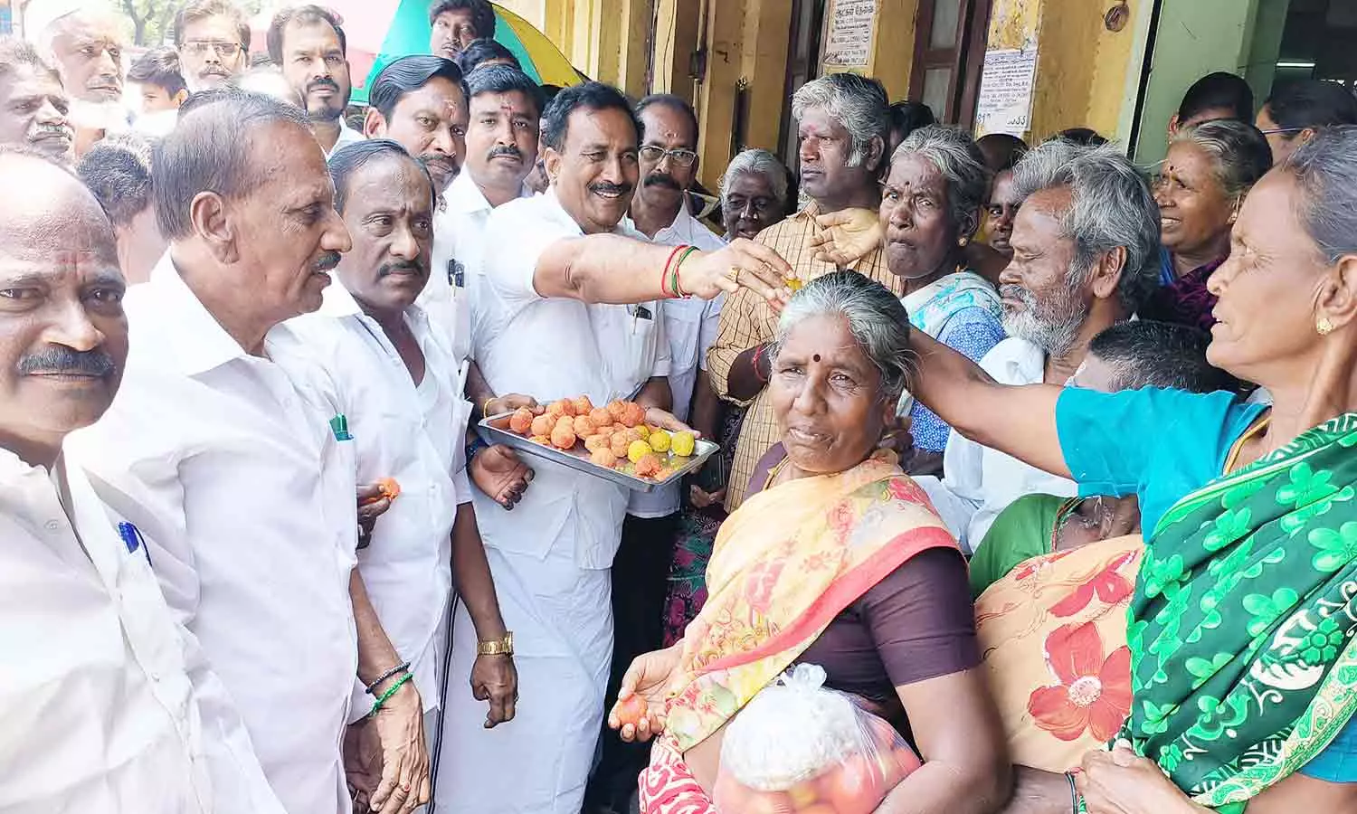இதேபோல் வாலாஜாபேட்டை நகராட்சி அலுவலகம் முன்பு உள்ள எம்ஜிஆர் சிலைக்கு நகர செயலாளர் மோகன் தலைமையில் மாலை அணிவித்து மேளதாளம் முழுக்க பட்டாசு வெடித்து பொதுமக்களுக்கு இனிப்பு வழங்கினர்.