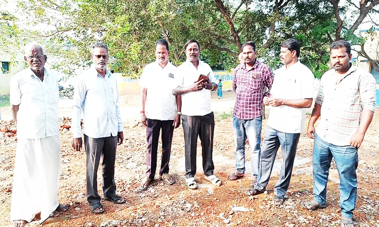புதிய கட்டிடம் கட்ட ஒன்றிய குழு தலைவர் ஆய்வு செய்த காட்சி.