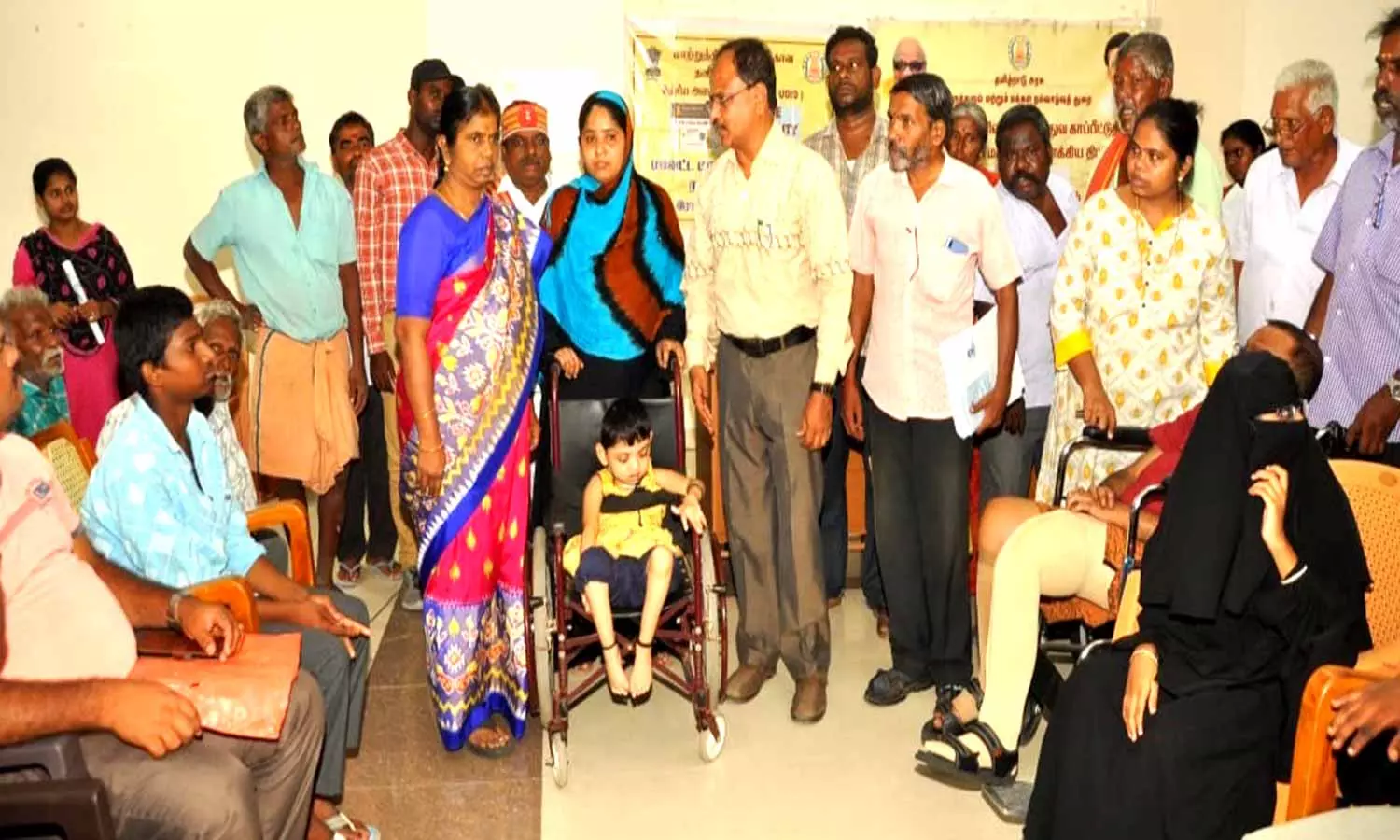 கலெக்டர் வளர்மதி மாற்றுத்திறனாளிகளுக்கு நலத்திட்ட உதவி வழங்கினார்.
