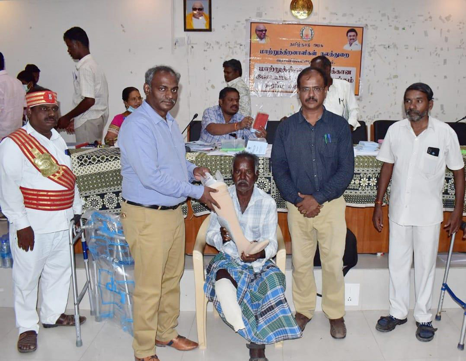 இதனை தொடர்ந்து மாற்றுத்திறனாளி ஒருவருக்கு ரூ.12.5 ஆயிரம் மதிப்பில் செயலிகளுடன் கூடிய திறன் பேசியும், 2 பேருக்கு ரூ.10 ஆயிரம் மதிப்பில் நடை பயிற்சி உபகரணம், ரூ.50ஆயிரம் மதிப்பில் செயற்கை கால் ஒருவருக்கும் கலெக்டர் பாஸ்கர பாண்டியன் வழங்கினார்.மேலும் ஒருவருக்கு ரூ.5ஆயிரம் மதிப்பில் காது காதொலி கருவி வழங்கினார்.
