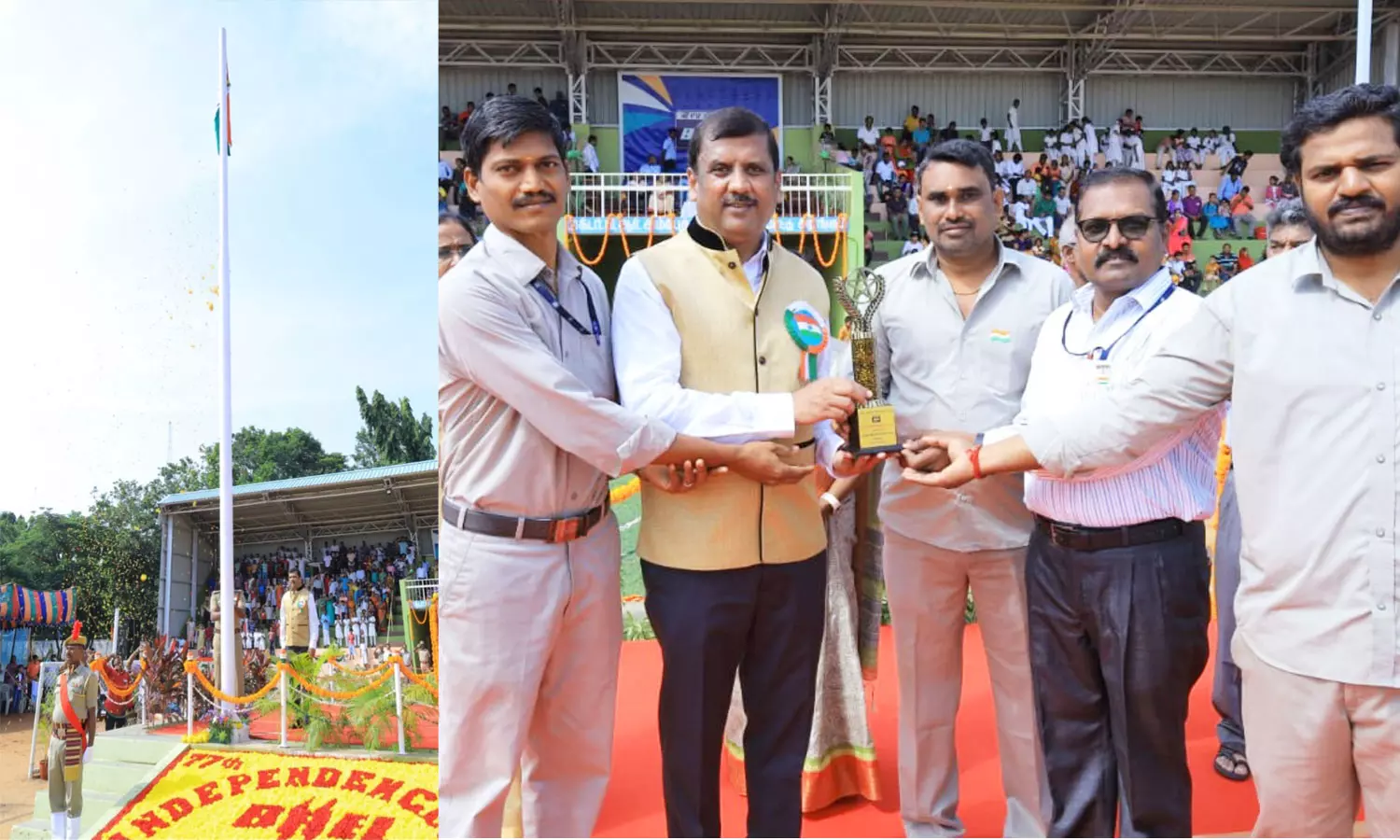 சுதந்திர தின விழாவில் பெல் நிறுவன செயல் இயக்குனர் ராஜீவ் சிங் பரிசு வழங்கினார்.