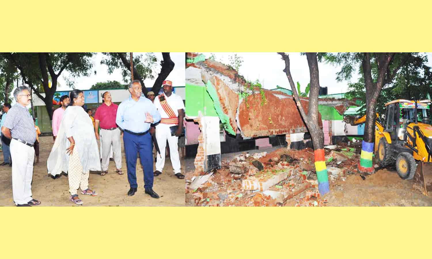 பழுதடைந்த பள்ளி கட்டிடங்கள் இடிக்கும் பணிகளை கலெக்டர் பாஸ்கர பாண்டியன் பார்வையிட்டார்.