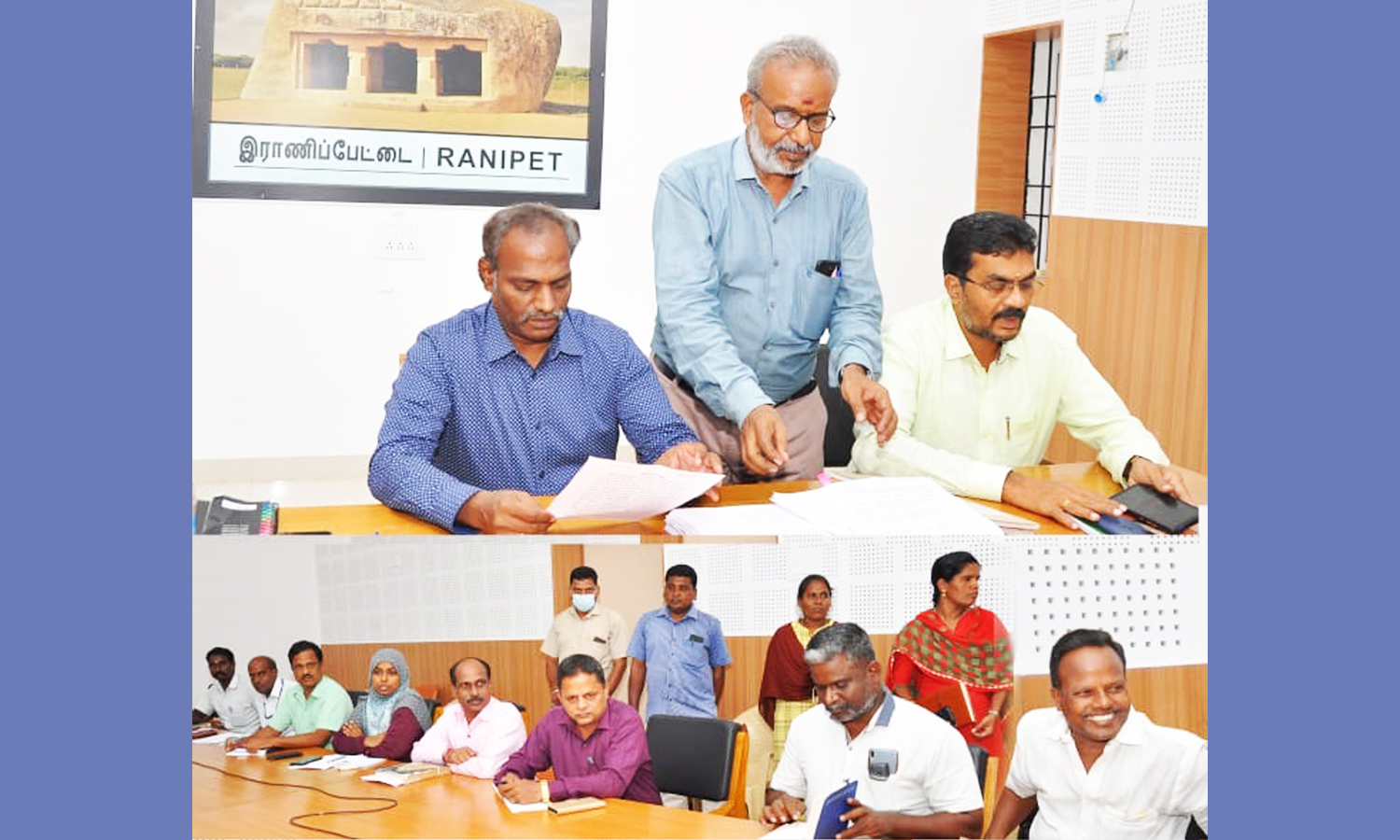 ராணிப்பேட்டை கலெக்டர் அலுவலகத்தில் வாக்குச்சாவடி மறு சீரமைப்பு இறுதி பட்டியல் குறித்து அனைத்து அரசியல் கட்சி பிரமுகர்கள் உடனான கலந்தாலோசனைக் கூட்டம் கலெக்டர் பாஸ்கர பாண்டியன் தலைமையில் நடந்த போது எடுத்த படம்.