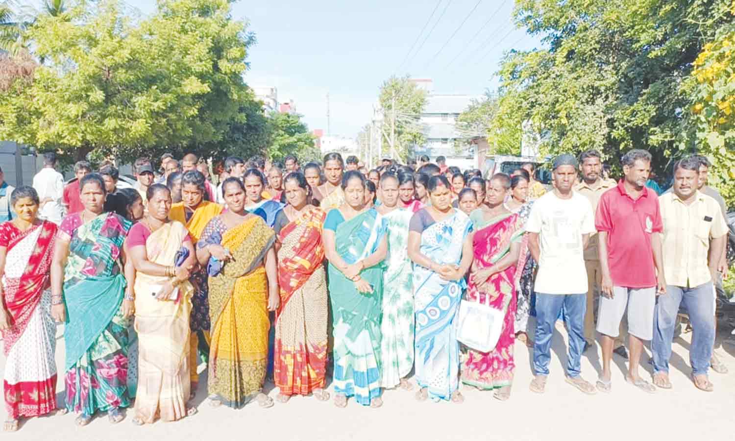 வேலை நிறுத்தத்தில் ஈடுபட்ட ஒப்பந்த தொழிலாளர்கள்.
