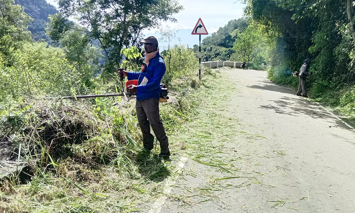 சித்தரேவு-மீனாட்சி ஊத்து இடையே சாலையோர செடிகளை அகற்றும் பணி