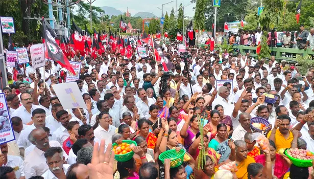 இதில் பங்கேற்ற பெண்கள் காய்கறி கூடைகளை சுமந்த படியும் கையில் பதாகைகளை ஏந்திய படியும் பங்கேற்றனர்.