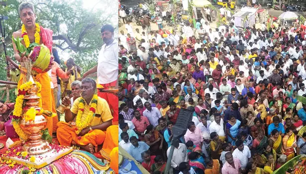 - வேடியப்பன் கோவிலுக்கு உடையாப்பட்டி கருமாரியம்மன் கோவில் வளாகத்தில் இருந்து தீர்த்தக்குடம் மற்றும் முளைப்பாரி எடுத்து அழைத்து வருதல் நிகழ்ச்சி நடைபெற்றது.
