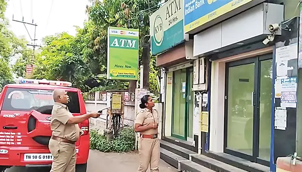 - இந்த ஏ.டி.எம் மையத்தி லிருந்து காலை 9 மணி அளவில் அபாய ஒலி ஒலித்தது.