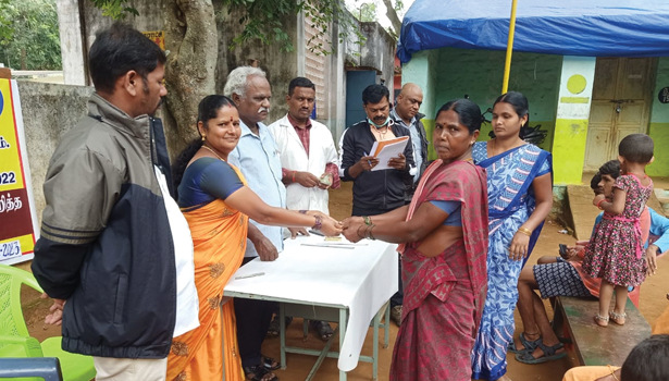 ஊராட்சி மன்ற தலைவர் தனலட்சுமி சின்னசாமி ஊக்கத்தொகை வழங்கிய காட்சி.