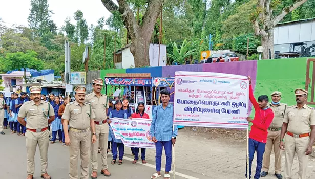 - ஏற்காட்டில் தமிழ்நாடு வனத்துறை சார்பில் சர்வதேச போதைப்பொருள் ஒழிப்பு மற்றும் விழிப்புணர்வு பேரணி நடைபெற்றது.
