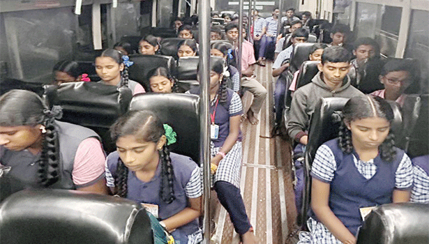 இஸ்ரோ விண்வெளி ஆய்வு மையத்தை காண பயணித்த அரசு பள்ளி மாணவ-மாணவிகள்.