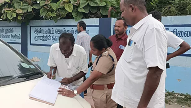 போக்குவரத்து ஆய்வாளர் கவிதா ஆய்வு செய்த[போது எடுத்த படம்.