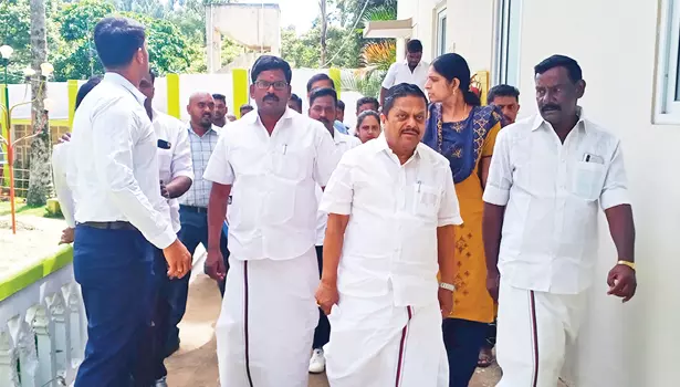 ஏற்காட்டில் அமைச்சர் ராமச்சந்திரன் ஆய்வு செய்த காட்சி.
